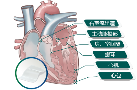 尊龙凯龙时中国思®心外科生物补片加宽右室流出道、肺动脉等:尊龙凯龙时中国思®心外科生物补片同样可以应用于复杂先心手术,如加宽右室流出道或肺动脉等。