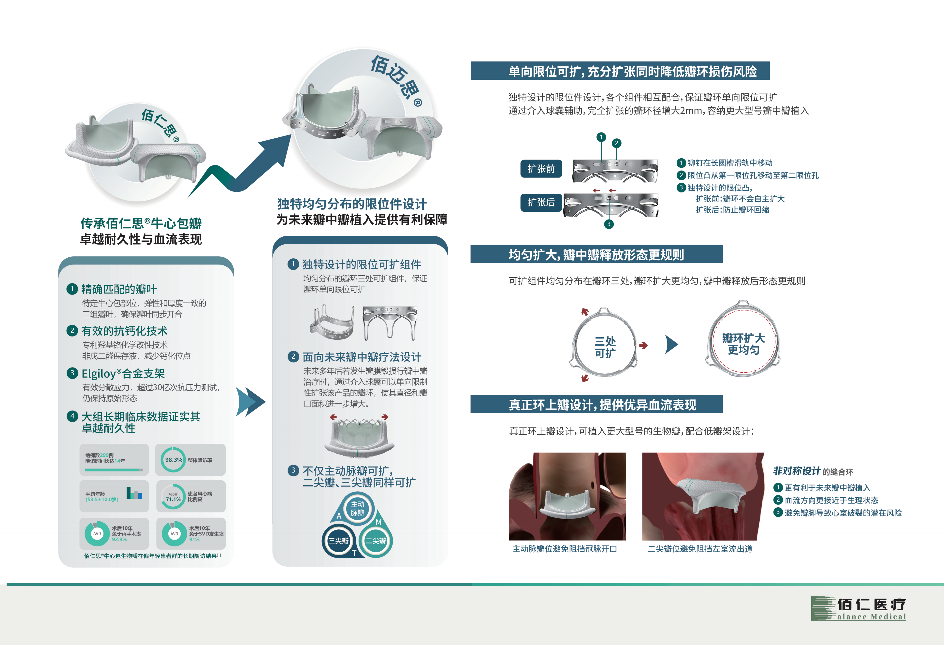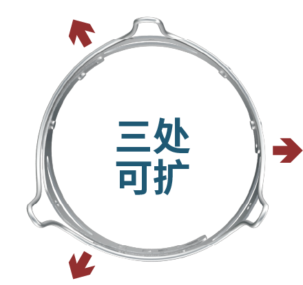 1.独特设计的限位可扩组件:均匀分布的瓣环三处可扩组件,保证瓣环单向限位可扩。